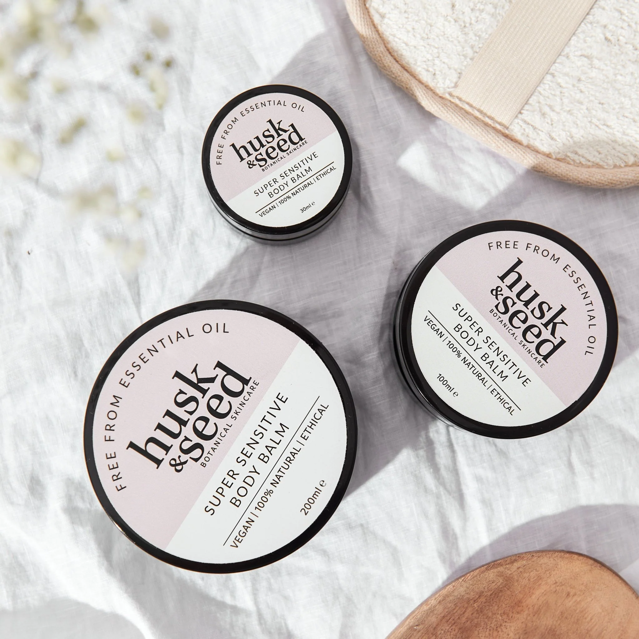 Melt away stress and nourish your skin with the luxurious caress of our Super Sensitive Body Balm. This rich blend of nature's finest ingredients cocoons your skin in a soothing embrace. Murumuru Butter, known for its deeply moisturising properties, melts effortlessly into your skin, leaving it feeling soft and supple. Oat Oil, with its calming and anti-inflammatory properties, soothes even the most delicate skin, while Apricot Butter adds a touch of nourishing radiance. Kokum Seed Butter, rich in essential fatty acids, helps lock in moisture and leave your skin feeling protected and pampered. This gentle balm, free from harsh chemicals and artificial fragrances, is perfect for daily use, leaving your entire body feeling comforted, nourished, and beautifully soft.